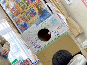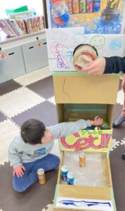 大きな段ボールに🖐️手を加え、切り貼りし、ジュース🥤も準備し