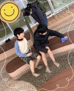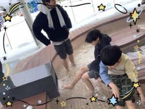 足湯に入ると「あったか~い😊」と子どもたちも大喜び!