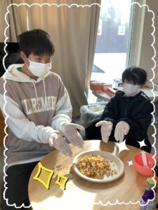 の五つの味付けをみんなで役割分担を決め、職員と一緒に作ることになりました!
